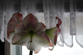 I have been trying to get this Amaryllis to bloom for two years and this year it rewarded my patience. I don't have a great deal of success with most indoor plants other than African Violets and Christmas Cactus so it is a treat to see this in bloom.
